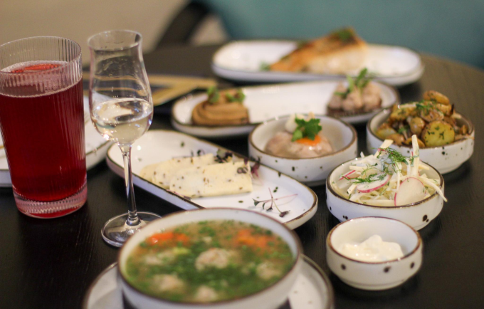 Chef and restaurateur Eriks Ozollapa’s newest spot feels like stepping into a friend’s Riga flat— creamy tones, mid-century vibes, books, traditional memorabilia, and that quiet Latvian intelligentsia energy. While others remix Latvian food into something “modern,” Ozollapa and their TV star head chef Lauris Barakauskis say it straight: Latvian cuisine is already good enough. The menu pulls from Erik's home Latgale region traditions with the produce sourced from local markets. Try out: blood sausage, jellied pork with sharp mustard and horseradish, herb-boiled beef tongue that hits clean and honest. Rye bread carries sprat spread, sprats with egg, or silky chicken liver pâté. Home-marinated herring with potatoes and cottage cheese, caraway cheese, and fried lamprey in jelly come out as sharing plates made for lingering. To go with local berry drinks or Latgalian moonshine 'šmakovka'. It’s low-key cool, authentic, a little cheeky, deeply local, and the kind of place foodie don't wanna skip. Located on the most picturesque Riga Art-Nouveau Alberta street.